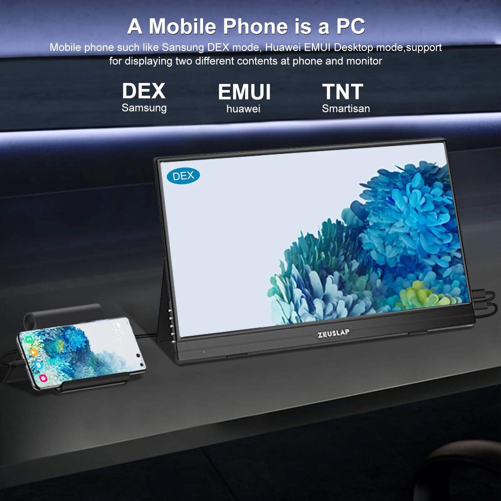 Q: 1. What if my mobile phone is not a thunderbots type c phone, how to make it work with ZEUSLAP portable monitor?